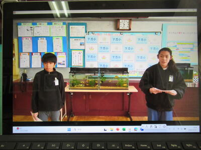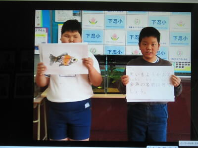 今朝は、オンラインで児童集会(飼育・栽培委員会、給食委員会の発表)を行いました。飼育・栽培委員からは、主に学校で飼っている金魚についての紹介があり、最後に委員全員で「大切な命をみんなで守っていきましょう!」と呼びかけていました。また、給食委員会からは、後片付けの仕方やマナーについての確認があり、最後に給食クイズで盛り上がりました。