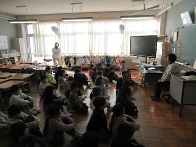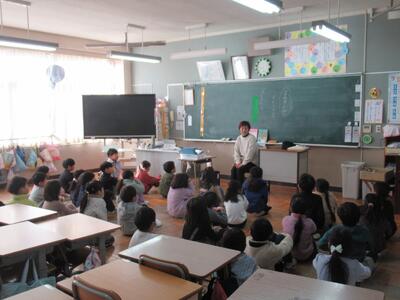 今朝は1・2年生、スマイル学級において「下忍小学校おはなし会」の皆様による読み聞かせがありました。おはなし会の皆様を教室で待っている間、1年生の子どもたちが「読み聞かせ大好き!」「楽しみ!」とうれしそうな表情で話していました。そしていざ読み聞かせが始まると、声を出して驚いたり、笑ったり・・・と、子どもたちはみんなお話の世界にひきこまれていました。おはなしの会の皆様がお帰りの際、代表の方が私に「子どもたちがよく聞いてくれてとてもうれしいです!」とおっしゃってくださいました。このようなお言葉をいただき、私もとてもうれしかったです。気持ちの良い一日のスタートが切れました!なお、来週は3・4年生となります。