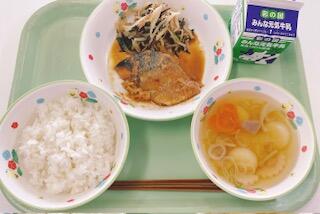 献立【ごはん 牛乳 にしんの照り焼き おふくろ煮 なめこの味噌汁】