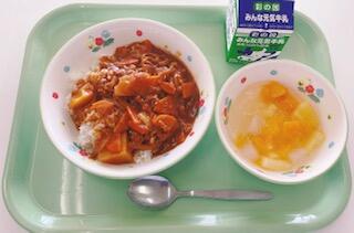 献立【ハヤシライス 牛乳 フルーツポンチ】