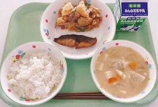 献立【ごはん 牛乳 鯵のスタミナ焼き 肉じゃが 飛鳥汁】