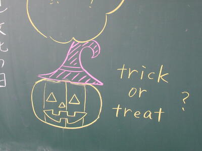 今朝、北門付近で登校の見守りをしていると、私の前を通過していく子どもたちが「おはようございます!トリック・オア・トリート!」というのです。そしてその後、子どもたちの口から出てきた言葉は「校長先生、お菓子ちょうだい!」です!あちゃ~🤣