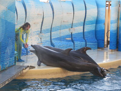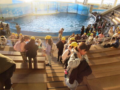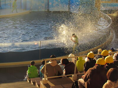 到着した班から水族館見学!最後はみんなでイルカショーを楽しみました🐬もちろんずぶ濡れになった人もいました💦