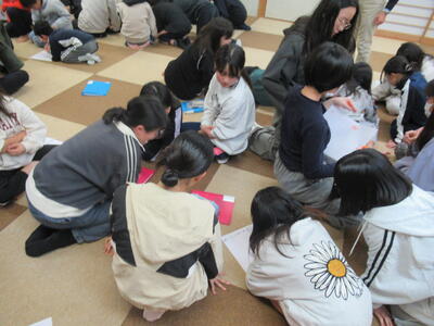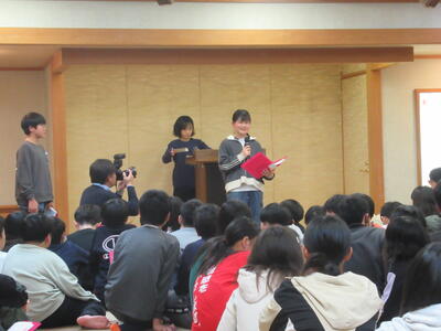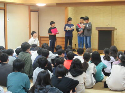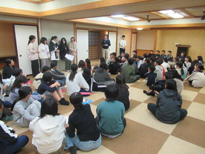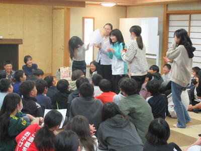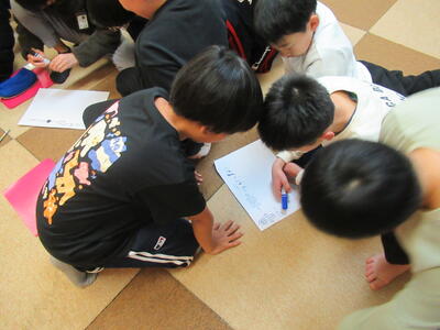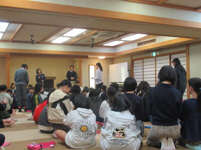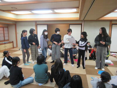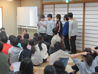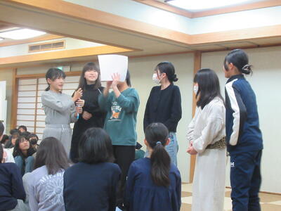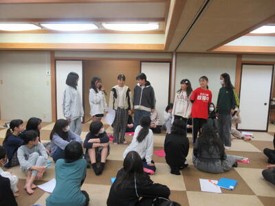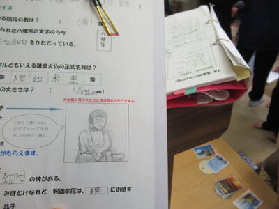 修学旅行1日目⑨ 室内レク 投稿: 下忍小学校 (12/04) 夕食の後は、室内レク!しりとりゲームやビンゴ、また班別行動の際に描いた大仏のイラストコンテストの表彰がありました。見事「校長賞」に輝いたのは、江ノ島コースのB班でした! Tweet 0 -