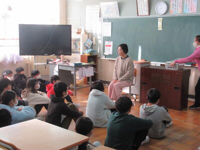 本日は「読み聞かせグループたんぽぽ」の皆様に、5・6年生の教室で読み聞かせを行っていただきました。(その他の学年・スマイル学級は朝読書。)たんぽぽの皆様は、本のお話がすべて頭に入っており、本を見ずに子どもたちの方を見ながらお話をしていました。また、声の抑揚や話す速さ、話している表情なども素晴らしく、子どもたちはみんなお話の世界にひきこまれていました。2学期はこれで最後となりますが、3学期もどうぞよろしくお願いします。