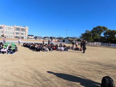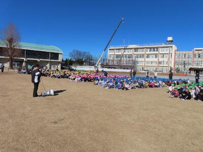 日差しに恵まれた3時間目、「火災を想定した避難訓練」を全校で行いました。事前に各クラスで「安全な避難の仕方」について学んだ後の訓練でしたので、『お・か・し・も・ち』等の原則を守りながら、校庭に避難することができました。今日は、訓練なので、先生たちの指示のもとで「教えられたとおり」に行動をしましたが、災害への対応は「自分の頭で考えて行動すること」が大切でとなります。指導講評の中で、「今日はなぜ、芝生部分に避難したのでしょう?」と子どもたちに問いかけたところ、何人もの児童が手を挙げてくれ、5年生の児童を指名すると「校舎で火災が発生したということなので、校舎から一番遠い、芝生に避難しました」と立派に答えてくれました。今後、登下校中に地震が起きたり、出先で火事に遭遇したりすることもあると思います。『お・か・し・も・ち』等の原則に従いながらも、「自分の頭で考えて、命を守る最善の行動をとる」、そのような「習慣」を身に付けてほしいと願っています。