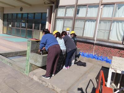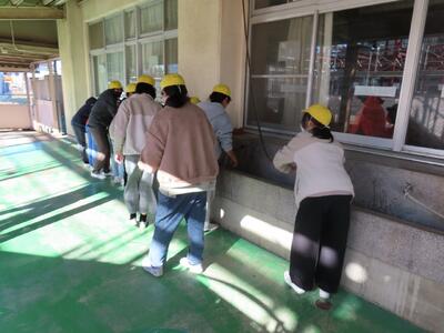 ※校庭に上履きで避難をします。校舎に戻る際、雑巾で上履きの底をふくのですが、高学年がその雑巾をあらってくれました。ありがとう。※