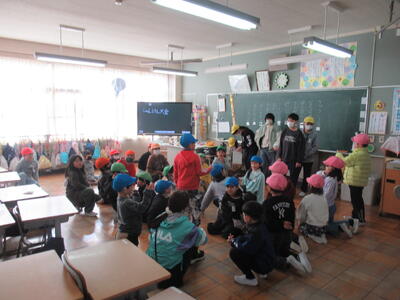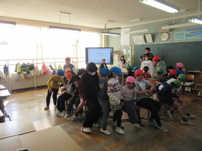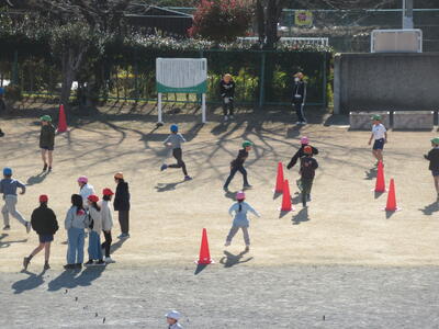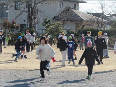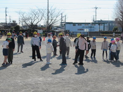 本日ロングの昼休みは、今年度最後の「たてわり遊び」でした。本日も、教室と校庭に分かれ、いす取りゲームや何でもバスケット、鬼ごっこ、ドロケイなど、どの班もみんな楽しそうに遊んでいました。中には6年生が最後なので、「6年生をつかまえるゲーム」をやっていた班もありました。聞くと、6年生は足が速くてなかなか捕まらなかったとのこと。さすが6年生ですね!そして最後は、班ごとに1年生から5年生で、6年生に今までお世話になったお礼を言って終わりとなりました。6年生は卒業まであとわずかですが、最後まで最高学年として立派な姿で生活をし、下級生たちの憧れとなる存在であってほしいと思います。