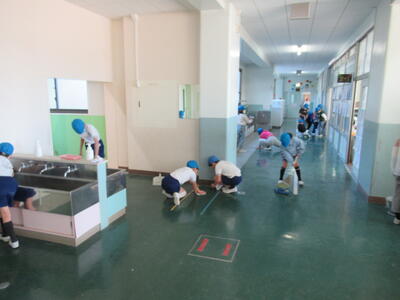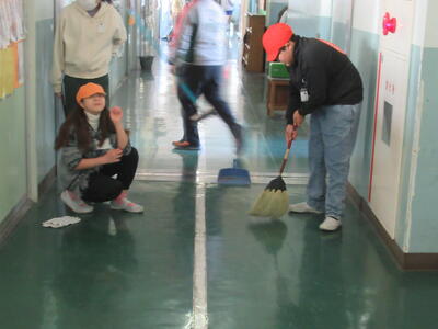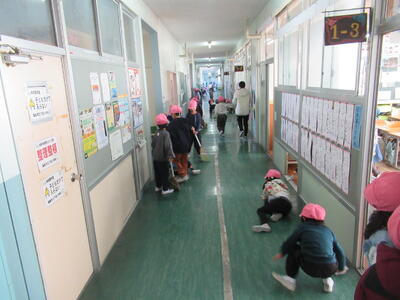 このような学校事情がある本校ですが、今日の朝清掃では、子どもたちが廊下の床に膝をつき、一生懸命に水拭き掃除を頑張っていました。3年生の子たちに私が「砂ぼこりがすごくて大変でしょ?ありがとね!」というと、その子たちが「きれいになると気持ちがいいです!」と、笑顔で話してくれました。その言葉を聞いて、なんて素晴らしい子どもたちなんだ!と嬉しくなってしまいました。「床の光は心の光✨」まさにこのことですね。このブログを更新したら、今日も掃除機とモップを手に、砂ぼこりと戦ってきます!