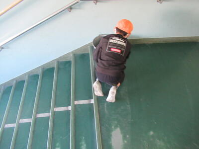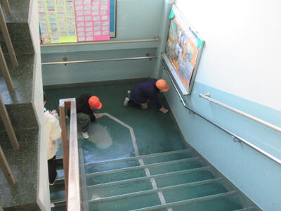 本校の校庭は全面芝生ではないため、校庭と校舎を出入りするたびに、昇降口や廊下、階段の床は校庭の砂埃で真っ白になってしまいます。授業中は昇降口を閉めているのですが、体育や休み時間などで、出入りするとすぐに砂ぼこりで真っ白になってしまうのです。子どもたちの授業中、毎日のように掃除機やモップを片手に学校中の掃除をしているのですが、やってもやってもきりがありません😣