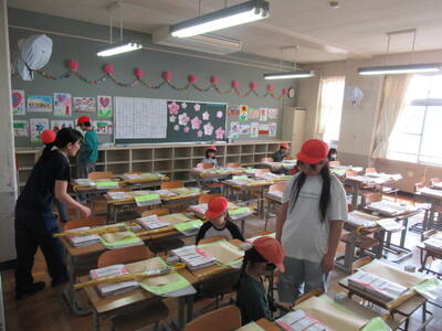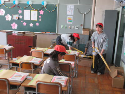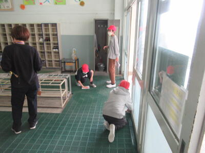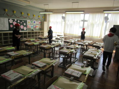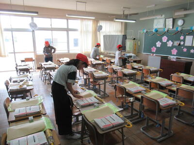 本日午前中、新6年生が登校し、入学式の会場準備や1年生の教室づくり、教室移動の荷物運び等を行ってくれました。みんな学校のため、新1年生のために、掃除や飾りつけ、荷物移動など、とてもよく頑張ってくれました。特に、作業の後半にもなると、先生に聞かず、自ら掃除をする場所を見つけ水ぶきをしたり、ほうきやバケツを片づけたりしていました。さすが最高学年です!その姿に感動しました!本日、最高学年としての初仕事は・・・100点満点!!本当にありがとう!