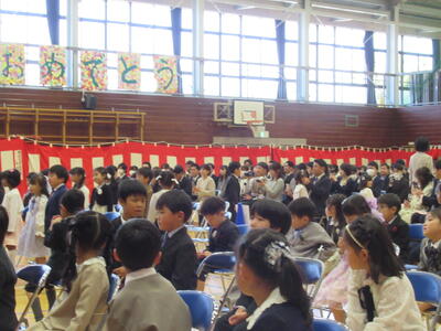 式は30分程度で終了しましたが、みんな最後まできちんと椅子に座り、また私の呼びかけに対してもしっかり返事をしていて、すごく立派でした。元気いっぱいの子やちょっぴり照れている子、また緊張している子など、様々でしたが、とにかくみんなかわいかったです!明日からの学校生活がとても楽しみですね!