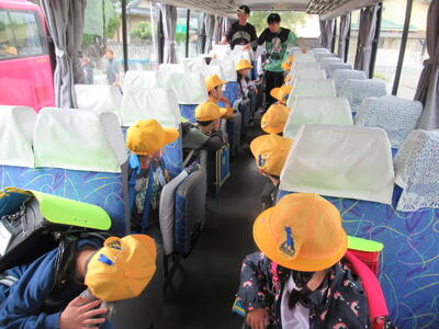今朝は、1年生のみですが、教育委員会と学校が連携し、スクールバスの避難訓練を実施しました。初めにバスの中で、改めてバスの乗り方や約束について確認し、その後、バス後方の非常口から実際にバスを降りる避難訓練を行いました。1年生の子どもたちは、みんなよく話を聞き、落ち着いて真剣に訓練を行っていました。