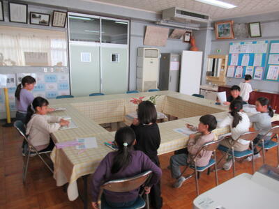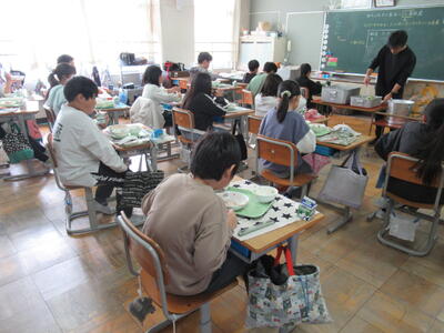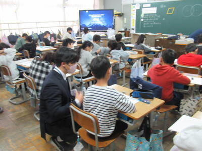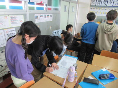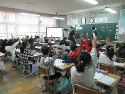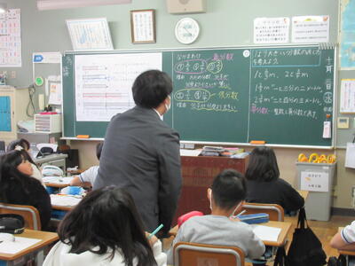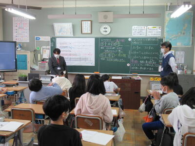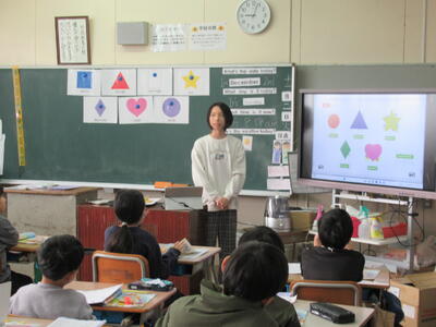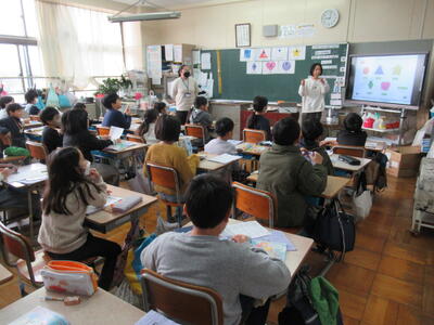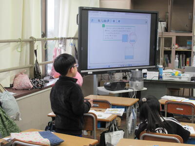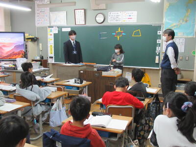 平行四辺形やひし形の定義について学習していました。挙手をする人がとても多く、みんなしっかりと授業に臨んでいました。