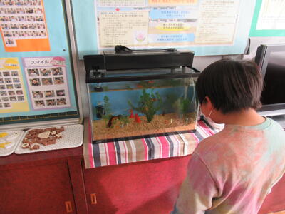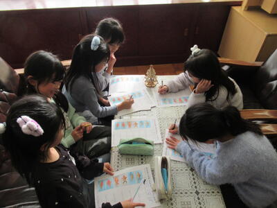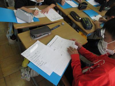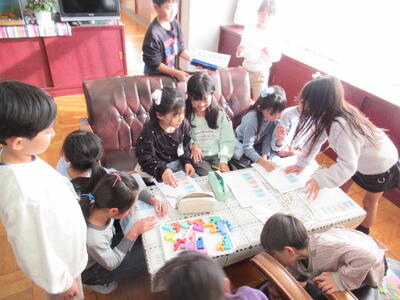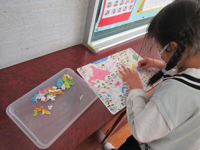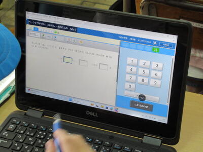 1Lより少ないかさをあらわす方法について学習していました。子どもたちは、マス目のカードを使い「0.1Lかな~?」とつぶやきながらみんな必死に考えていました。