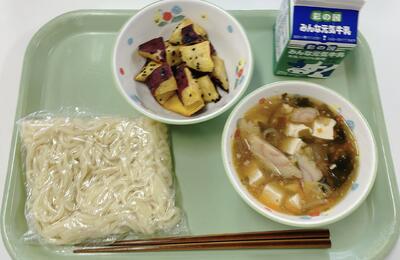 献立【豆腐ラーメン 牛乳 大学いも🍠】